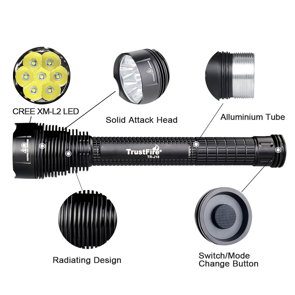 High Power LED Flashlight 8000LM Water Resistant Lamp