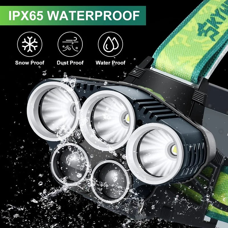 Waterproof 5X LED Super Bright LED USB Rechargeable Headlamp